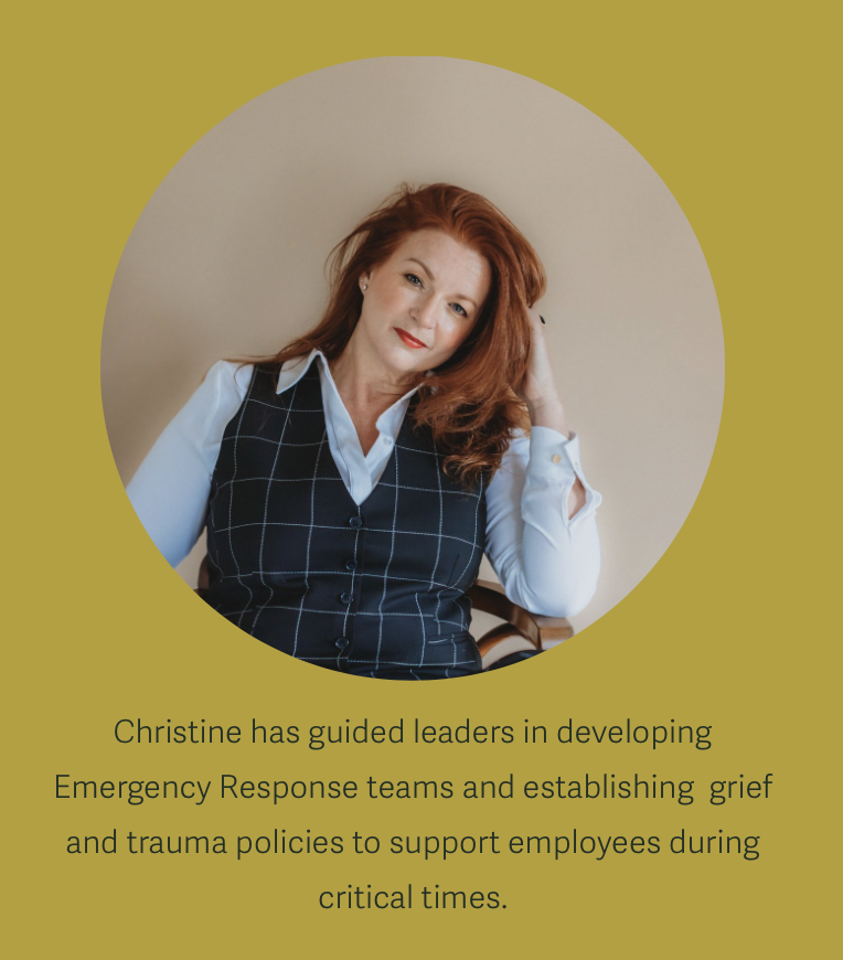 Christine, is a down to earth humanitarian who has worked the front lines and is not afraid to be real in the field of grief, trauma and bereavement. Christine holds a certification in Bereavement Trauma with the American Academy of Experts in Traumatic Stress and is a Certified Trauma Services Specialist, with the Association Of Traumatic Stress Specialists. Christine is a member of the Toronto International Coaching Federation and the International Association of Coaching holding an IAC Masteries Practitioner. Her academic affiliations include Niagara University, Oklahoma Traumatology, Brock University, the University of Wisconsin and National Centre for P.T.S.D. Christine is a professional Coach, Author and Speaker for clients such as communities, Indigenous, Armed Forced, healthcare, educational in-stitutes, corporations, small businesses, individuals, government agencies, and non-profits.