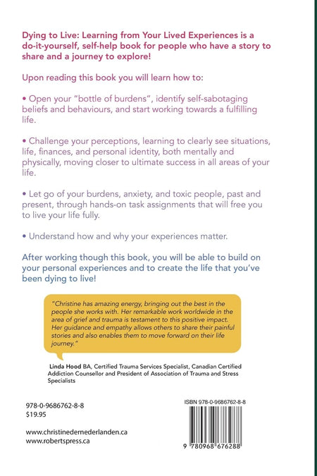 Dying To Live Learn to Live a Full Life From YOUR Lived Experiences is a do-it-yourself, self-help book for people who have a story to share and a journey to explore!