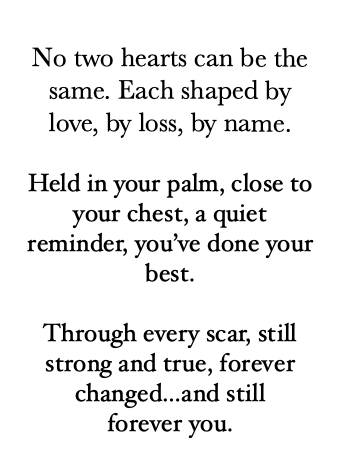 No two hearts can be the same. Each shaped by love, by loss, by name.