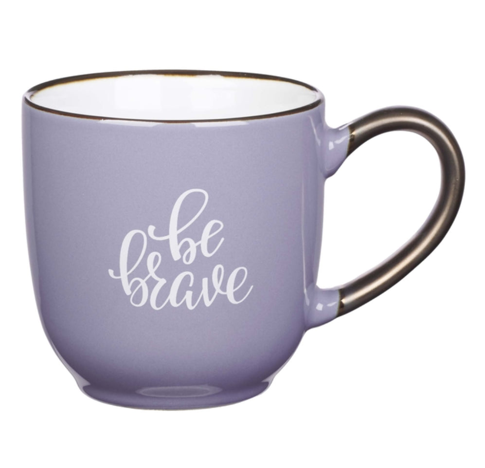Seize the day and start it off with a hot drink poured into your Be Brave Ceramic Mug. Keep this mug to remind yourself that you are braver than you think then go out and do hard things. The lavender Be Brave Mug is made of ceramic. The title, Be Brave, is scripted in white to coordinate with the white interior. The mouth and handle are rimmed in bronze. Pair the mug with a coordinating keyring and journal to act as constant reminders that you can do this. Capacity: 10 Fl Oz (296 ml) Gift Box Dimensions: 5.1 x 3.5 x 3.5 (130 x 89 x 89 mm)