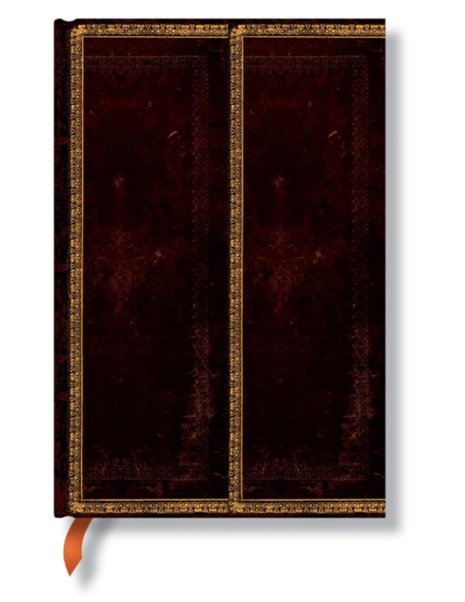 Morocco leather is a pliable material that has been valued in luxury book bindings since the late 16th century. Its strength provided a rich backdrop for showcasing embellishments, and it is this classic leather and gilt combination that has inspired us to create this cover. Original Art: Gold-tooled leather bindings. Era: Contemporary art in a Renaissance style. Region: Made in Canada with a European influence.